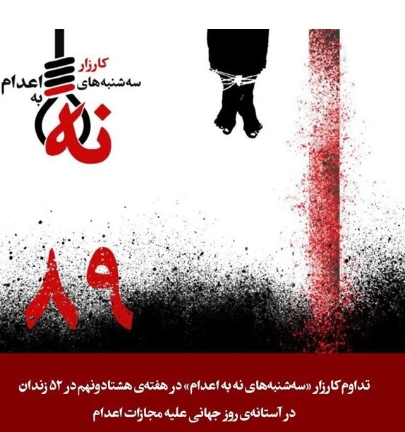 تداوم کارزار «سه‌شنبه‌های نه به اعدام» در هفته‌ی هشتادونهم در ۵۲ زندان، در آستانه‌ی روز جهانی علیه مجازات اعدام