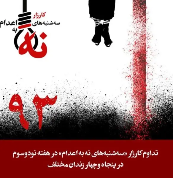 کارزار «سهشنبههای نه به اعدام» سهشنبه ۱۳ آبان ۱۴۰۴ در هفته نودوسوم در پنجاه و چهار زندان زیر در اعتصاب غذا خواهند بود: