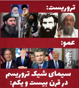 امروز باید بپذیریم که سیمای تروریسم تغییر کرده است. تروریست‌های خطرناک امروز جهان ریش و عمامه ندارند و حتی مذهب‌شان هم اسلام نیست. آن‌ها مسیحی و یهودی هستند و سکولار و با کروات هستند و رؤسای جمهور و وزیر و مشاور کشورهایی چون آمریکا و اسرائیل هستند. امروز نه «بن‌لادن» و «القاعده» یا «ابوبکر البغدادی» و «داعش»، بلکه «نتانیاهو» و «ارتش اسرائیل» و «ترامپ» و «ارتش آمریکا» هستند که تروریست‌های خطرناک اما غیر تحت تعقیب هستند